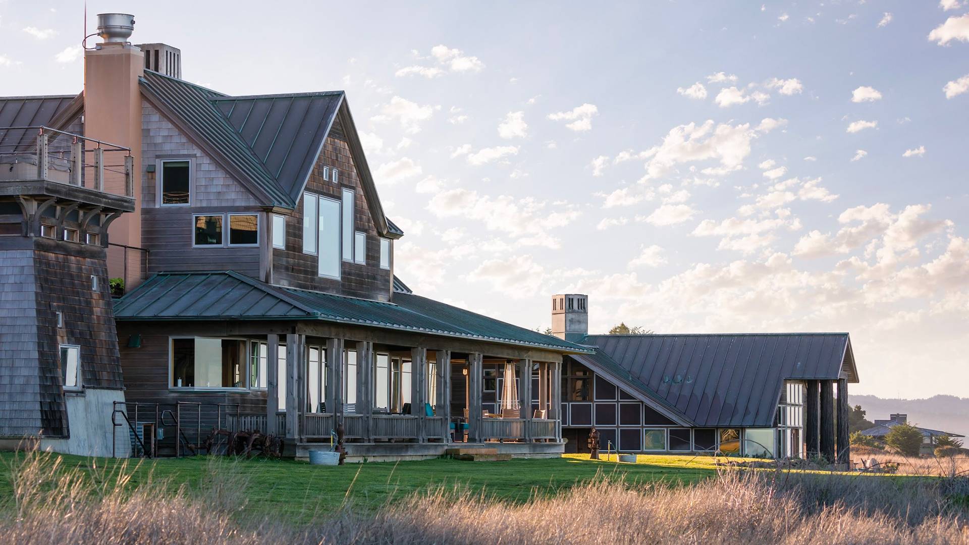 Dinners are often communal affairs at a massive redwood slab table, featuring seaweed salad from kelp gathered on the ranch’s private beach.
